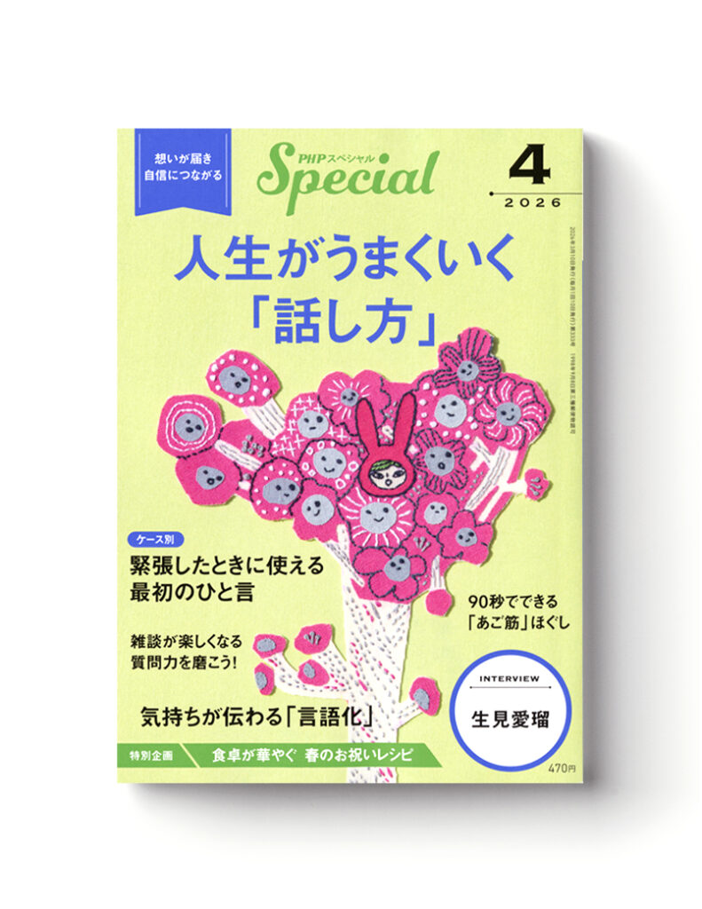 2026-03-08 PHPスペシャル4月号 PHPスペシャル4月号の表紙絵を担当しました。 Client: PHP研究所 Cover illustration: MICAO Design: 田村 梓 Home › Illustration › PHPスペシャル4月号 タグ: embroidery, illustration, MICAO, PHPスペシャル, works, イラストレーション, 刺繍, 連載 関連記事 Illustration File 2025 掲載 赤ずきんラインスタンプ第二弾 発売スタート PHPスペシャル3月号 Wave Rokko 6月号表紙絵 PHPスペシャル2月号 日々歩 特別寄付号
