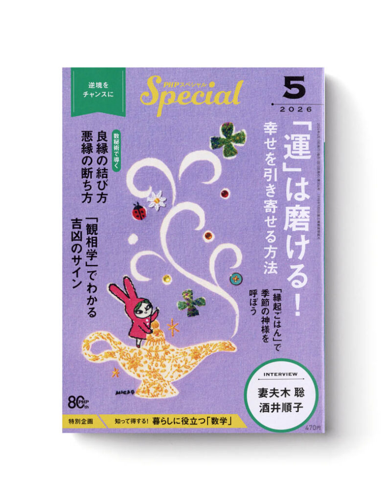 2026-04-08 PHPスペシャル5月号 PHPスペシャル5月号の表紙絵を担当しました。 Client: PHP研究所 Cover illustration: MICAO Design: 田村 梓 Home › Illustration › PHPスペシャル5月号 タグ: embroidery, illustration, MICAO, PHPスペシャル, works, イラストレーション, 刺繍, 連載 関連記事 PHPスペシャル3月号 姫路医療センターパンフレット PHPスペシャル5月号 精選文学国語 装画/扉絵 PHPスペシャル7月号&8月号表紙絵 PHPスペシャル4月号